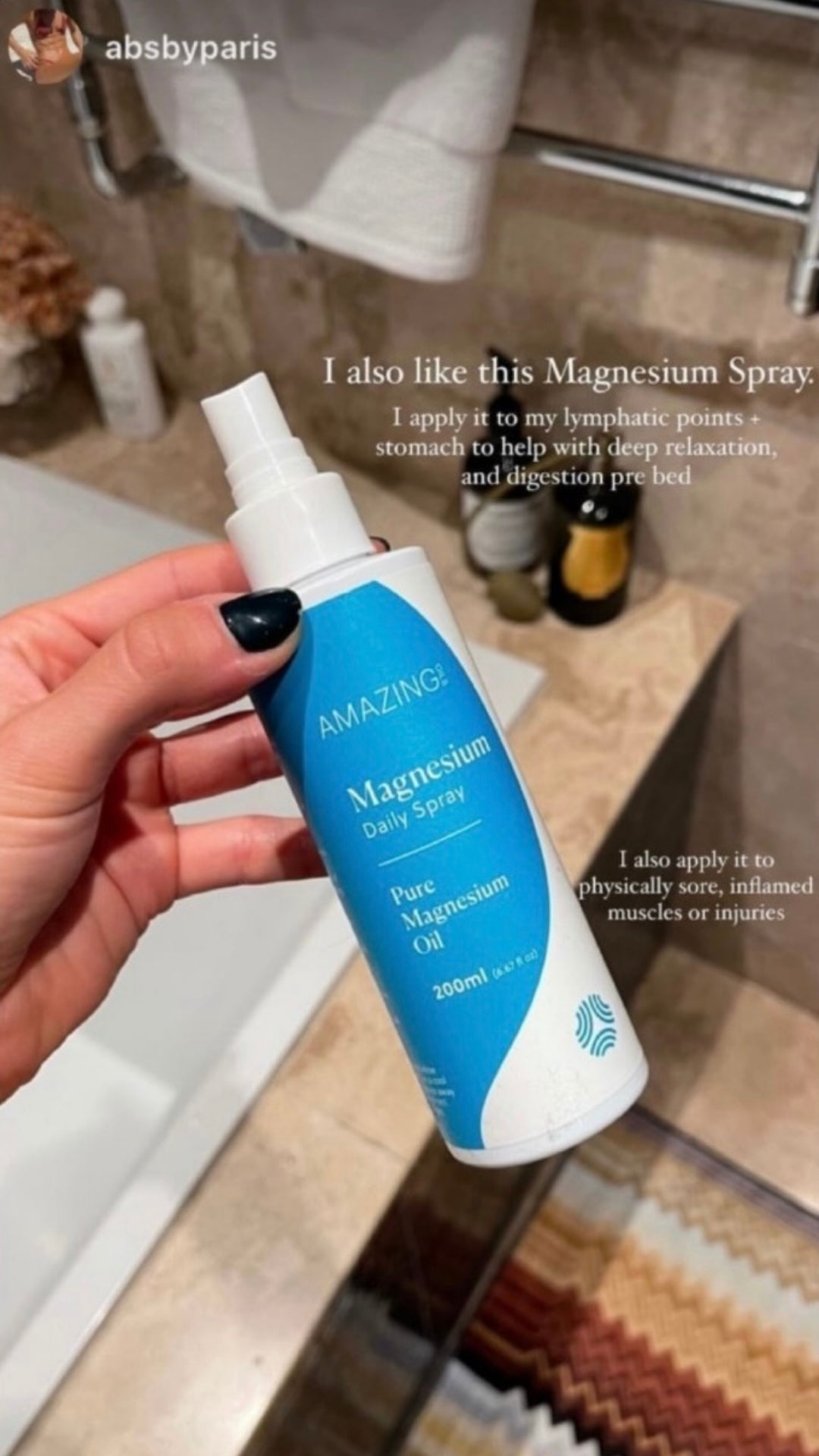 Evening: Apply 4–5 sprays to your lower body (back of legs, tops of feet) to unwind and promote relaxation before bed.